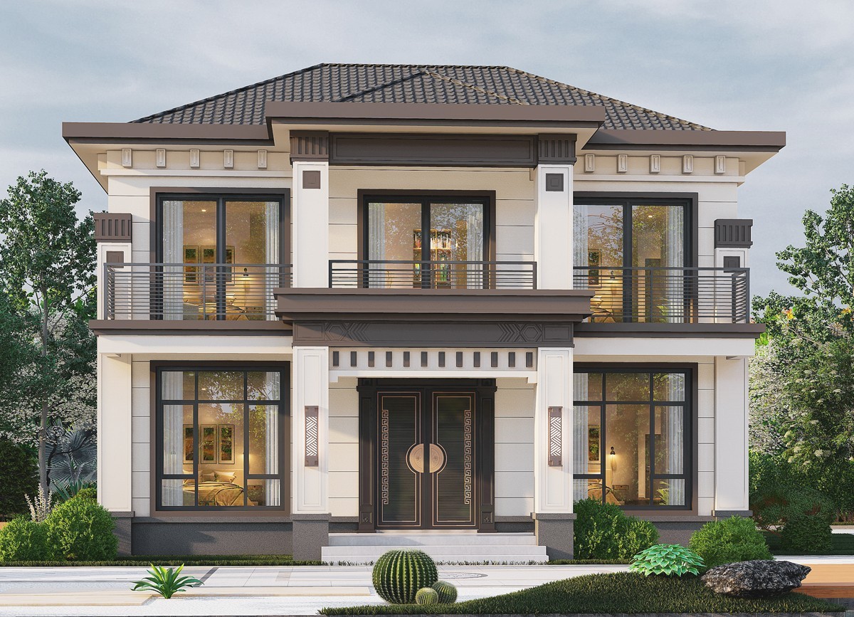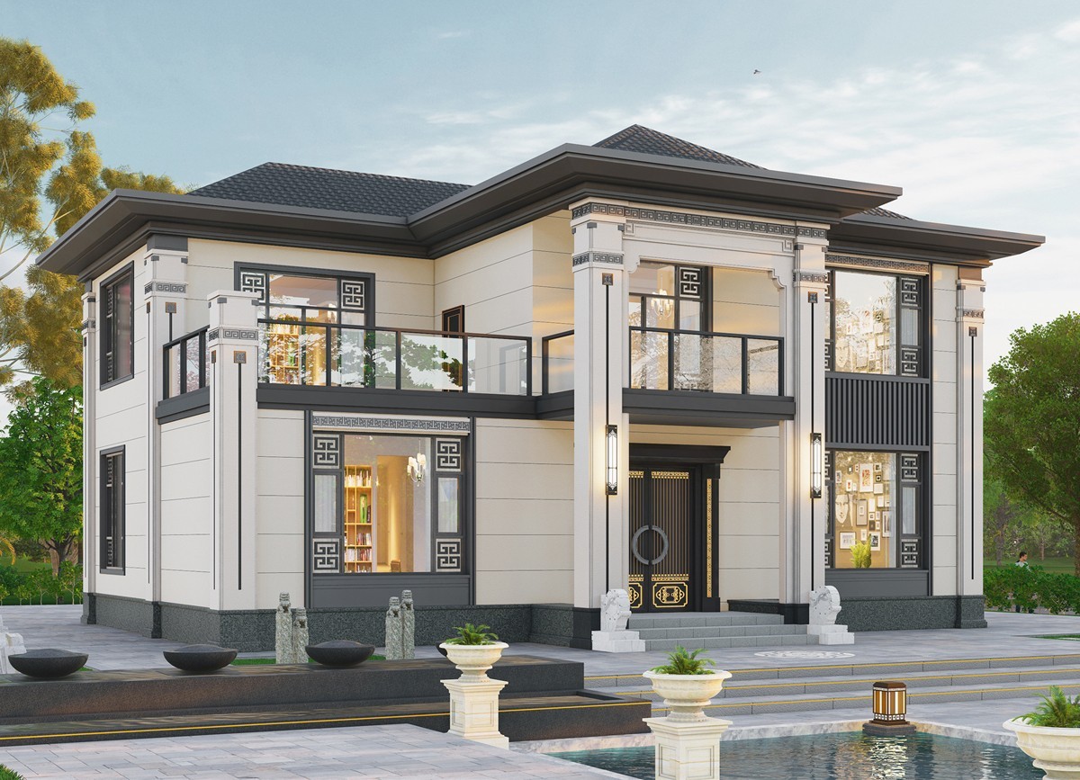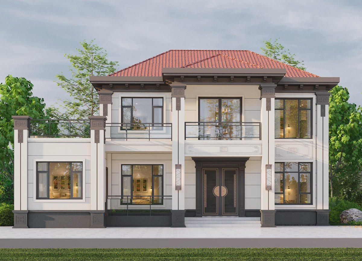 天水005 两层新中式(11.36x11.76米)-【易设计】