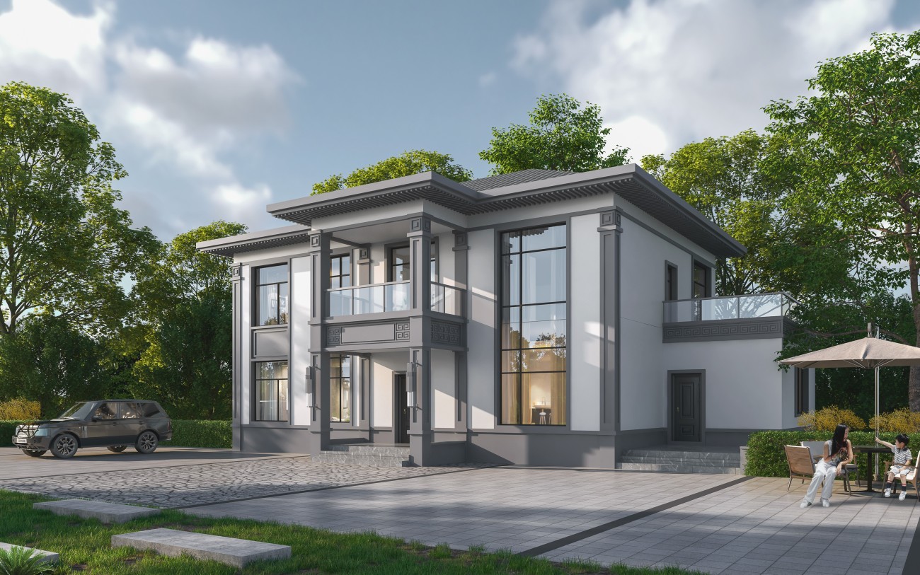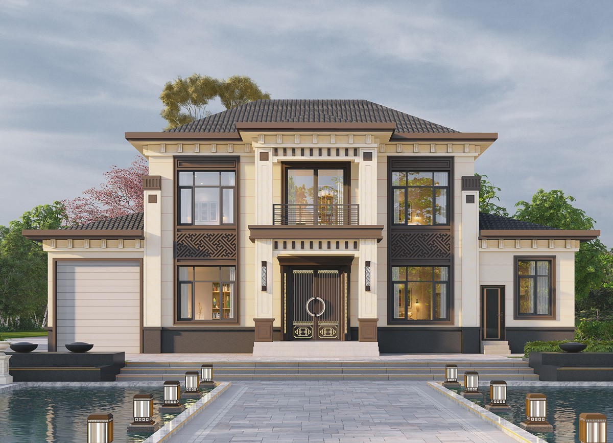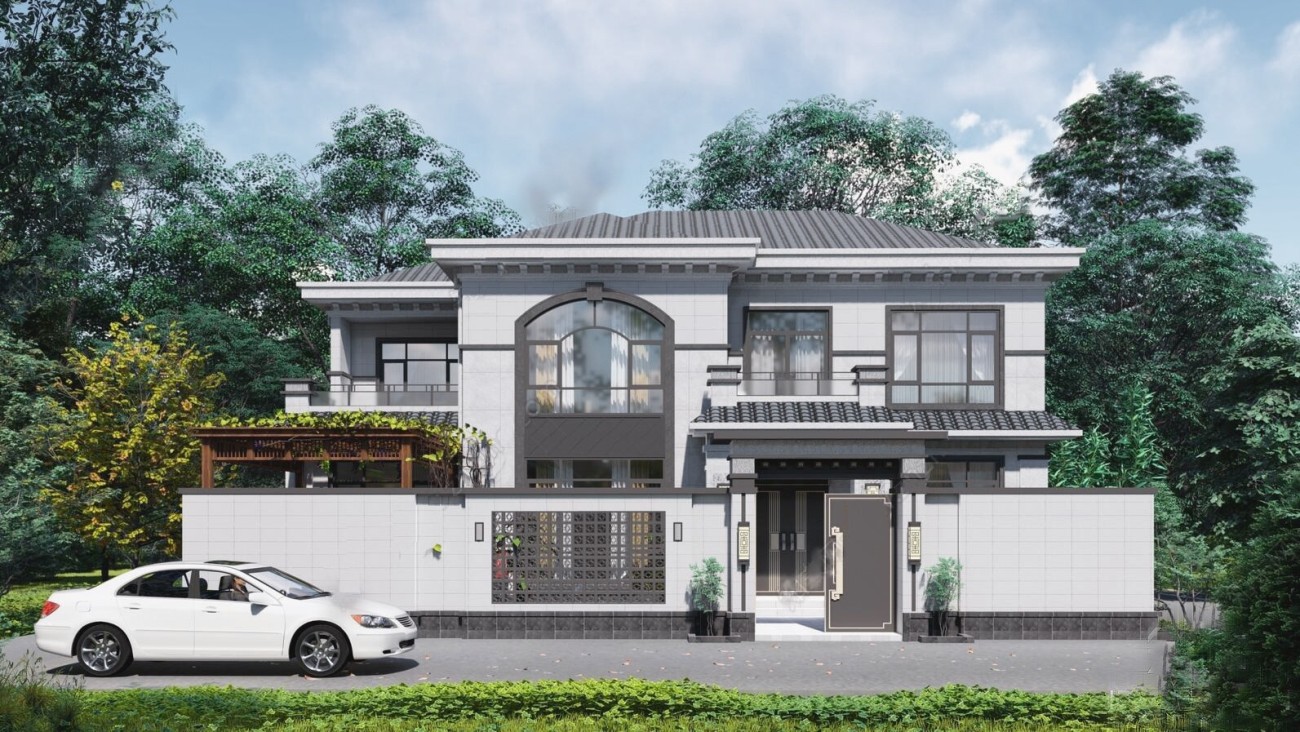 天水011 两层新中式(15.43x12.66米)-【易设计】